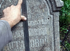 Для начала мы взялись за измерения памятника: нам предстояло изготовить табличку на лицевую сторону надгробья, а верх вновь украсить православным крестом.